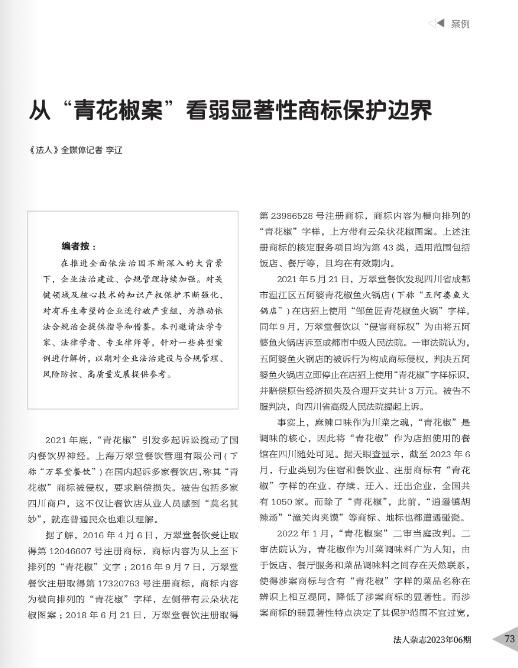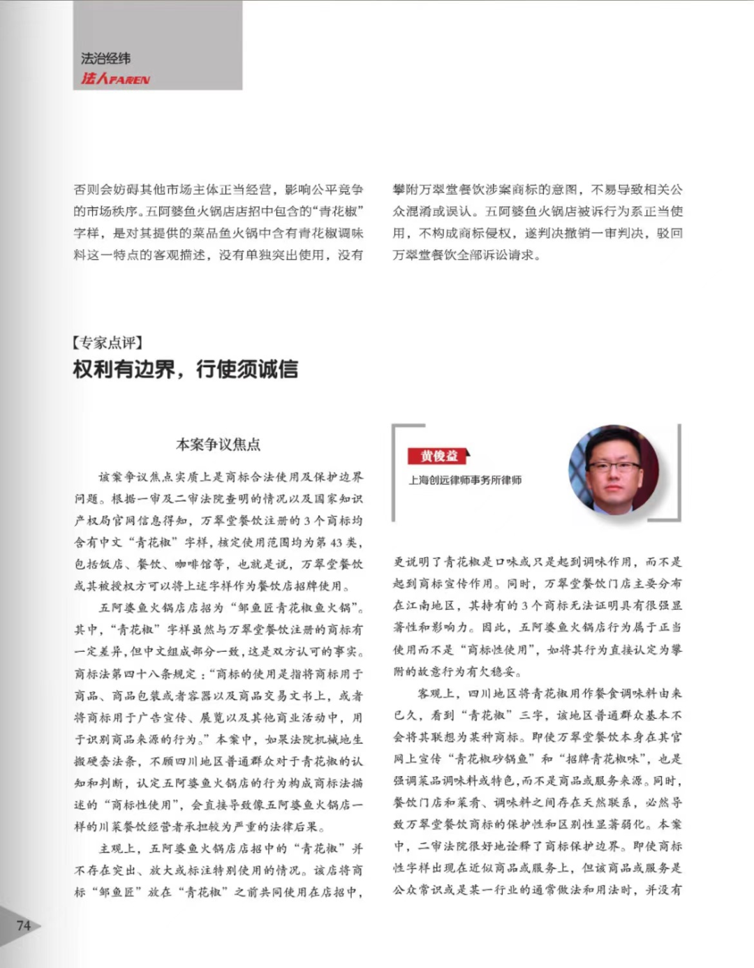 邢台辉知简讯 | 辉知队黄俊益律师应“法治日报”旗下杂志邀请,就“青花椒”案发表专家点评